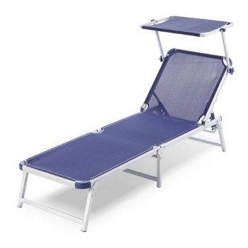 Lettino sdraio spiaggia tettuccio mare prendisole alluminio bianco o blu piscina