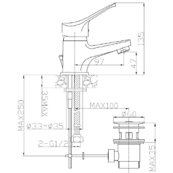 Waschtischmischer Onda aus verchromtem Messing mit Abfluss