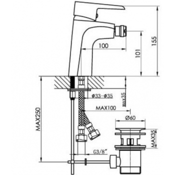 Bidetmischer Asia aus verchromtem Messing mit Abfluss