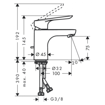 copy of Waschtischmischer Onda aus verchromtem Messing mit Abfluss