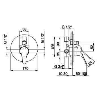 Einhebel-Brausebatterie Cisal M3000210 in verchromtem Messing