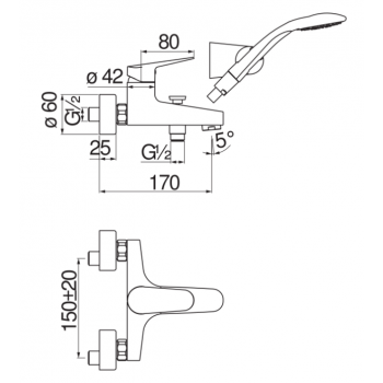 - Einstrahlige Handbrause und 150 cm flexibler Schlauch