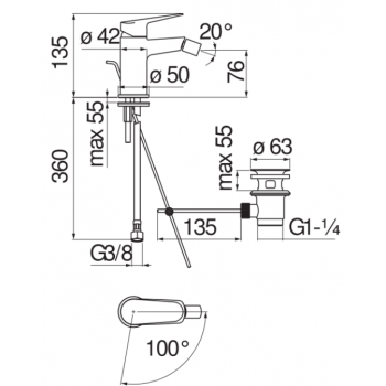 Eleganter Bidet-Einhebelmischer von Nobili. Dort befindet sich der Abfluss und der Wasserstrahl ist einstellbar.