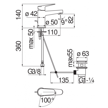 Eleganter Waschtisch-Einhebelmischer von Nobili. Dort befindet sich der Abfluss und der Wasserstrahl ist einstellbar.