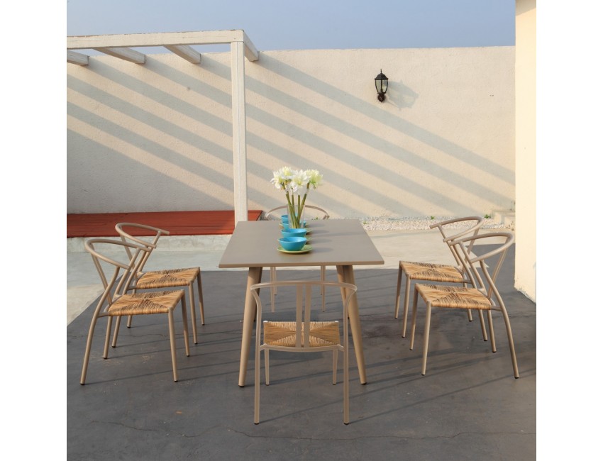 Il tavolo Trapani è un eccellente complemento di arredo esterno, capace di risultare moderno ed elegante nonostante il design sobrio e modesto. La forza di questo tavolo risiede nella combinazione di colore e materiale: il color tortora riesce a dare il meglio di sè attraverso una struttura interamente realizzata in alluminio, che ne risalta i riflessi e la lucentezza, trasformandolo in una vera e propria calamita per gli occhi.