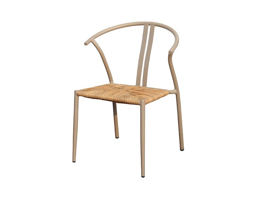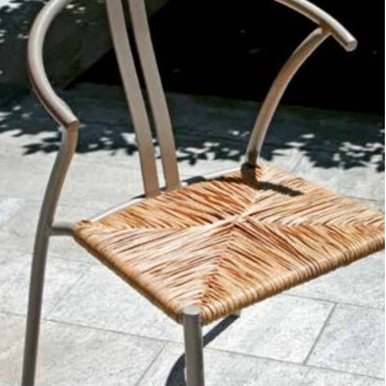 La sedia Erice, con il suo particolare schienale e il curioso color tortora, attira sicuramente l'attenzione. La struttura, elegante e moderna senza essere troppo complicata, è in alluminio, mentre la seduta è in wicker, color paglia. La sedia è impilabile, per un facile e veloce risparmio di spazio.