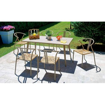 La sedia Erice si abbina perfettamente al tavolo Trapani, come mostrato nell'immagine; scoprilo nel nostro catalogo e crea il tuo set da giardino in un istante!