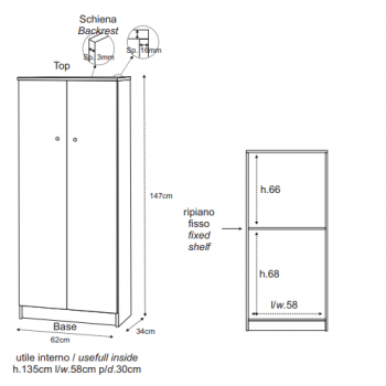 Dieser Kleiderschrank ist dank der innenliegenden Einlegeböden funktional gestaltet. Es lässt sich außerdem leicht mit jeder Art von Möbeln kombinieren und ist sehr ästhetisch ansprechend.