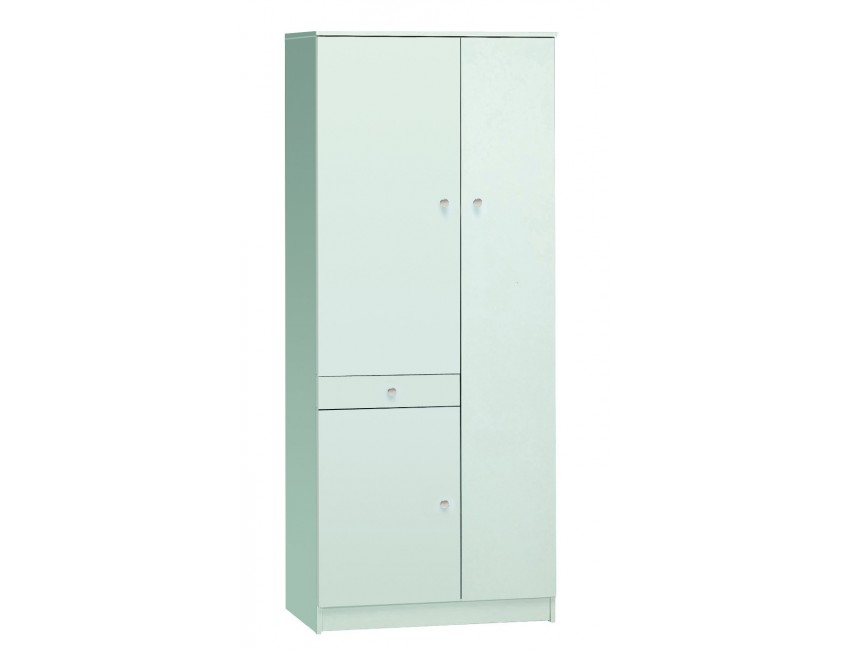 Kleiderschrank 77x183H cm Mattweiß mit drei Türen und einer Schublade