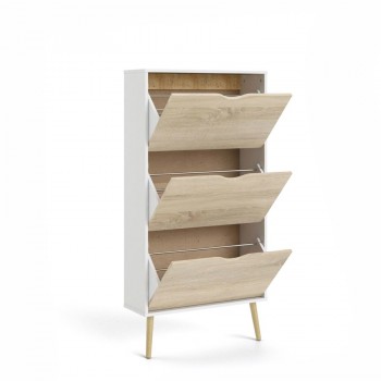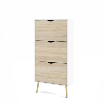 Schuhschrank 139 cm Eiche und Mattweiß mit drei Klappen