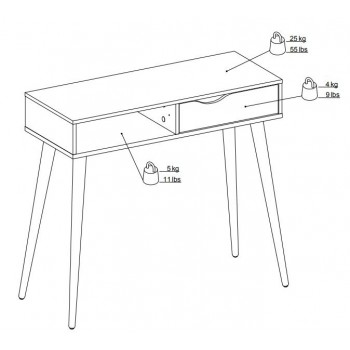 Konsolentisch 103x43 cm Mattweiß und Eiche mit einer Schublade und einer Ablage
