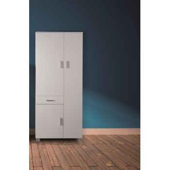 Kleiderschrank 77x178H cm Weißes Eschenholz mit drei Türen und einer Schublade