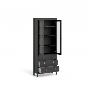 Vitrine Wohnzimmer 199 cm mattschwarz mit zwei Türen und drei Schubladen