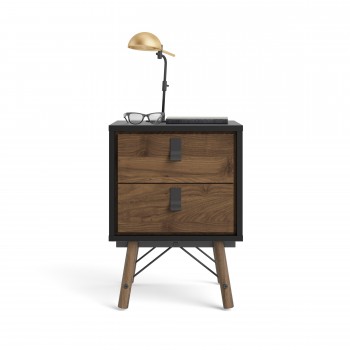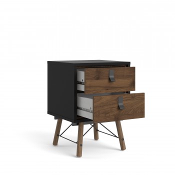 Nachttisch 43x30 cm Mattschwarz und Walnuss mit zwei Schubladen