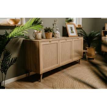 - In eleganter, heller Eiche mit Flechtoptik an den Türen