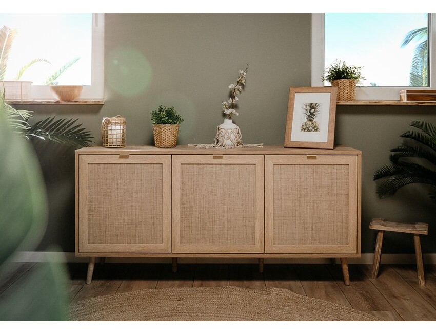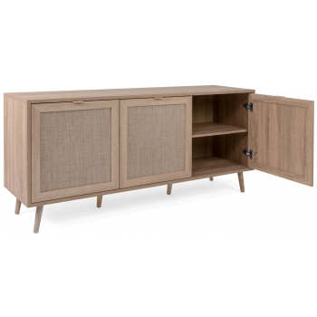 Wohnzimmeranrichte 150x71H cm Eiche hell mit drei Türen und drei Einlegeböden