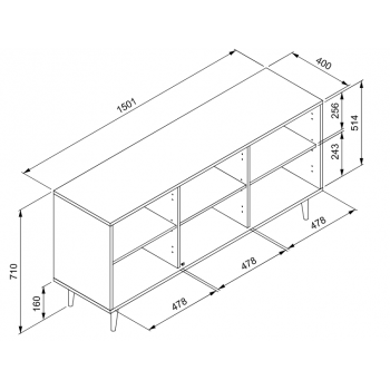 - Struktur aus 18 mm und 15 mm dicken melaminharzbeschichteten Holzplatten und MDF