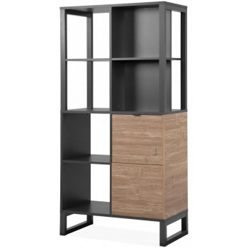 Regal 83,6x165H cm Manhattan Bambus und Anthrazit Grau mit zwei Türen