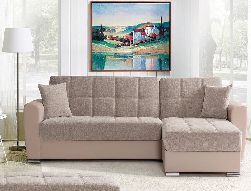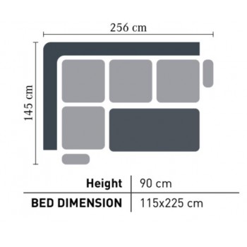 Eckschlafsofa 256X145 cm Orchidea Farbe taubengrau aus Ökoleder und Stoff
