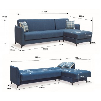 Eckschlafsofa 272X150 cm Dalia Farbe Blaue