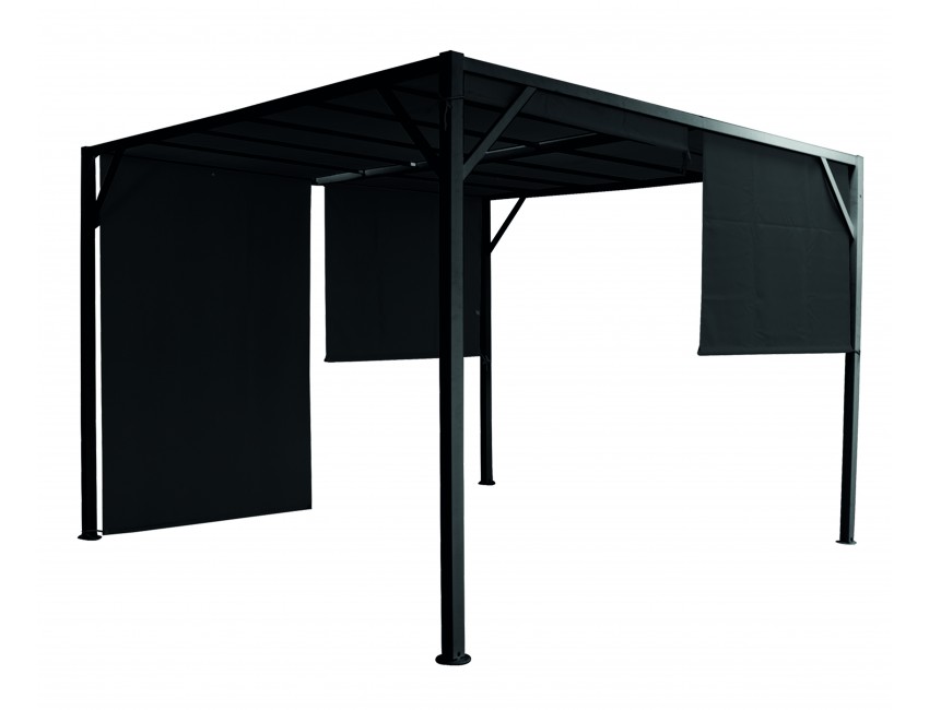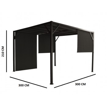 Pergola-Pavillon 3x3 m aus lackiertem schwarz Metall mit seitlichen Vordächern
