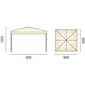 - Quadratischer Pavillon 3x3 m (Höhe: 2,53 Meter)