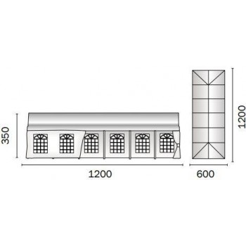 - Rechteckige Zelt 12x6 m und maximale Höhe 3,50 Meter