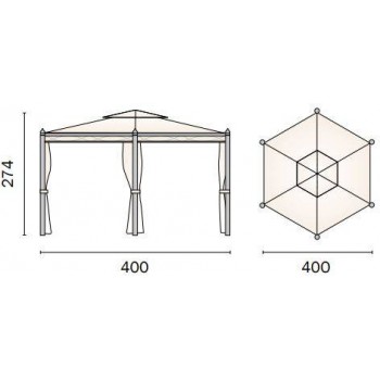 - Ausgestattet mit winddichten und seitlichen Vorhängen, Farbe ecru (natürliche Farbe der Fasern, ohne Behandlungen).