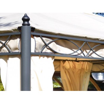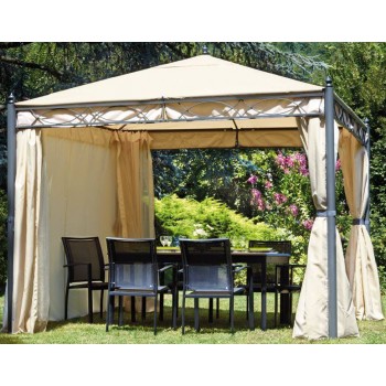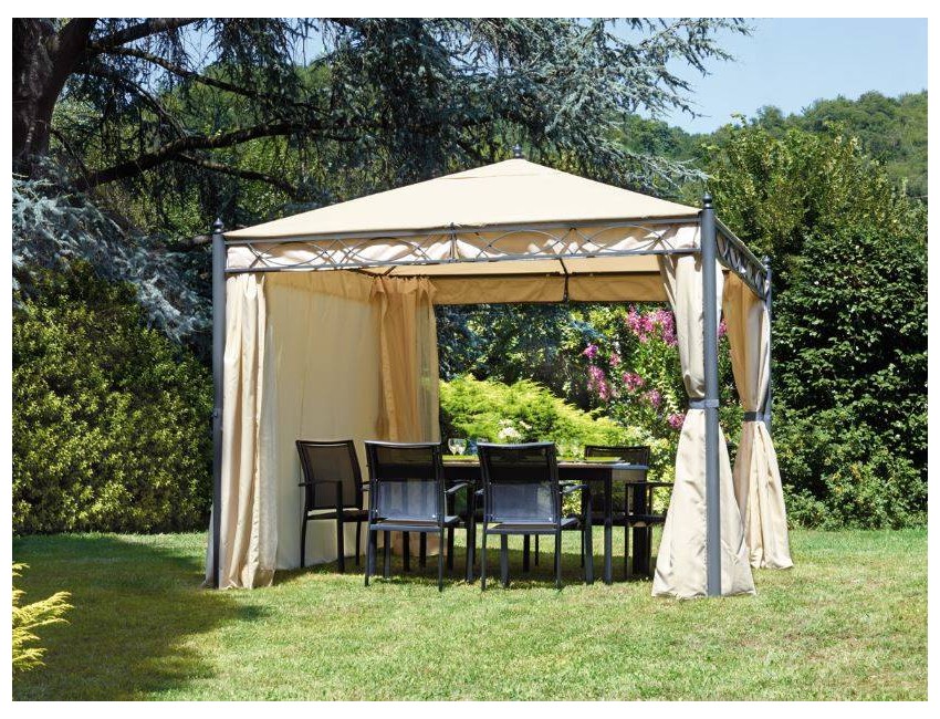 - Ausgestattet mit winddichten, seitlichen Vorhängen und Moskitovorhängen, Farbe ecru (natürliche Farbe der Fasern, ohne Behandlungen).