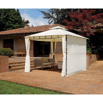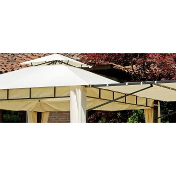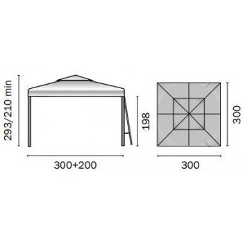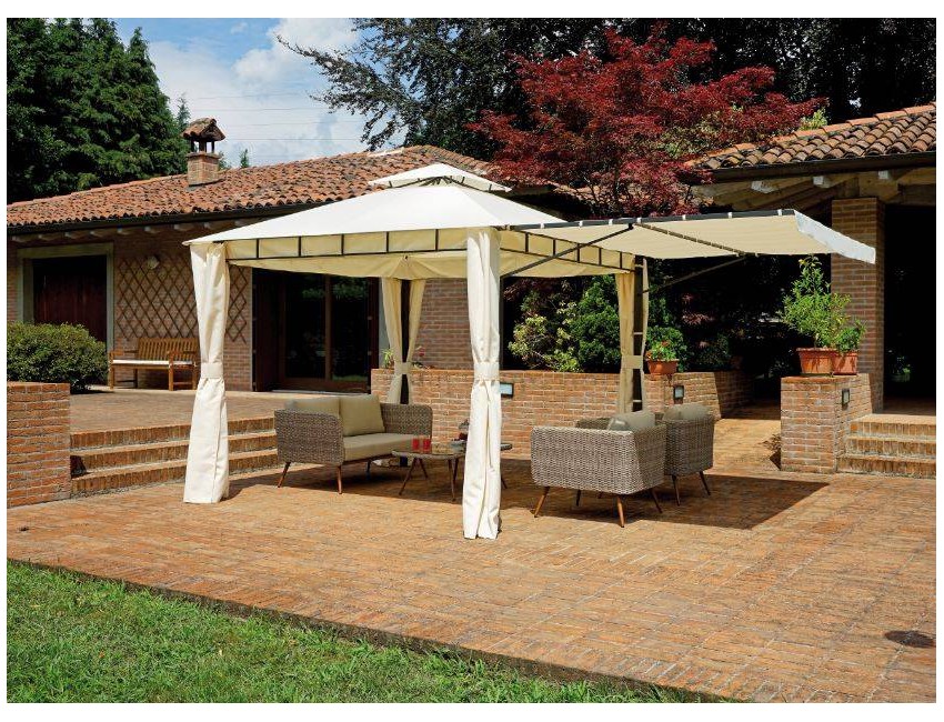 - Verstellbarer Seitenvorhang: horizontal positioniert, verlängert er die Abdeckung des Pavillons und verwandelt sie in einen 5x3 m großen.