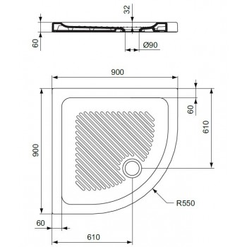 Eck-Duschwanne 90X90 cm Keramik Ideal Standard Connect weiß rutschfest