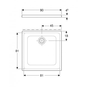 Quadratische Duschwanne 90X90 cm aus Feinsteinzeug Geberit 45 glänzend weiß