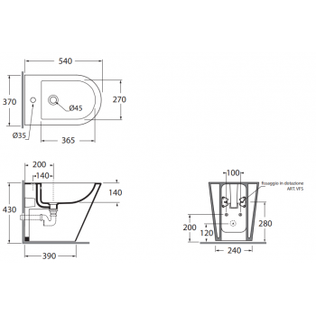 Boden-Bidet 37x54 cm aus keramik serie Luna