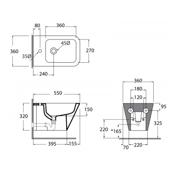 Hänge-Bidet 36x55 cm aus keramik serie Crio