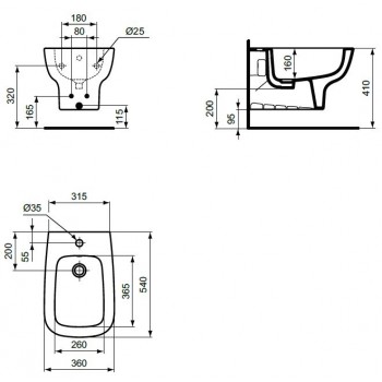 Einloch-Wandbidet Ideal Standard Esedra mit verdeckten Armaturen