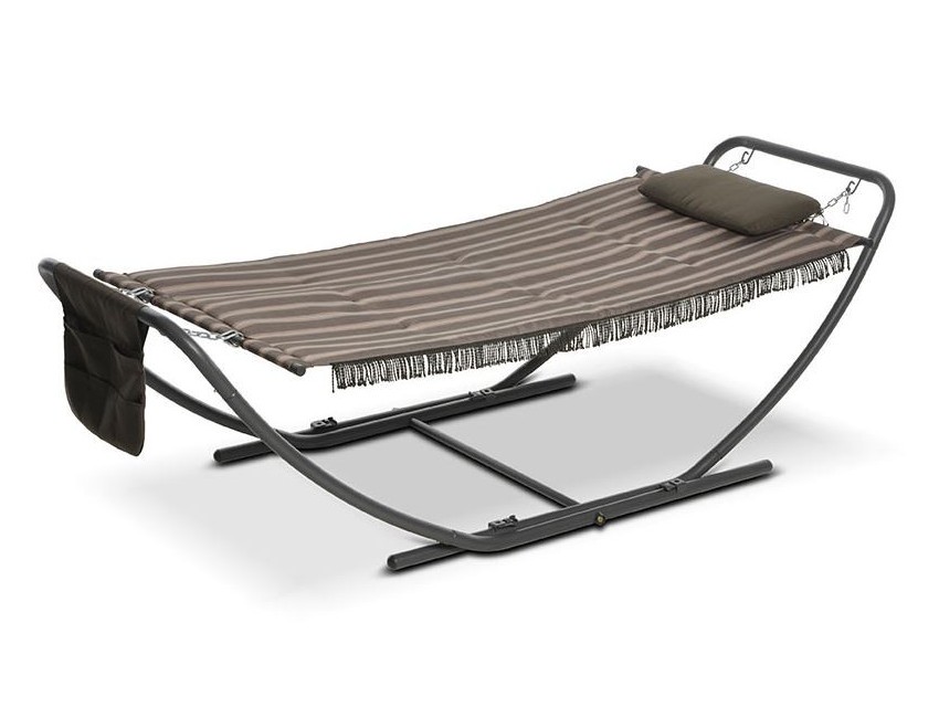 AMACA LETTINO GIARDINO SUPPORTO PIEGHEVOLE CON CUSCINO E RETE PORTAOGGETTI FERRO POLIESTERE BEIGE MARRONE ESTERNO
