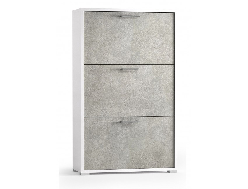 Schuhschrank 112 cm Esche weiß und zement mit drei Klapptüren