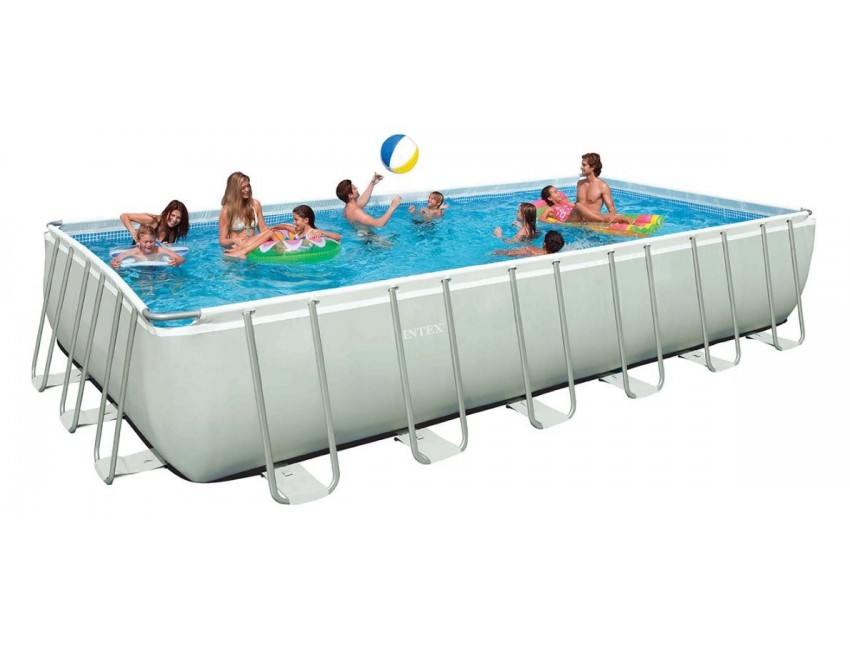Piscina rettangolare compresa di Pompa a sabbia 220-240V, scaletta, telo terra, telo copertura. cm 732 X 366 X h132 Sabbia non compresa (richiede 23 kg di sabbia silica sand 0,45-0,55 mm.) Ingombro a terra : cm 787 X 422 Capacità L 31.805 (90%) Filtraggio L 7.959 /h