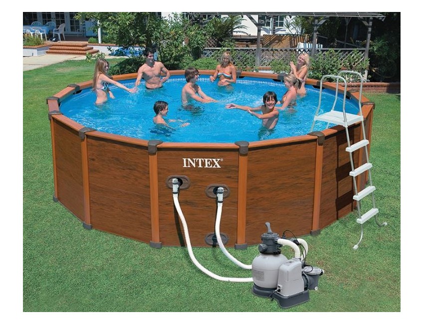 Piscina rettangolare compresa di Pompa a sabbia 220-240V, scaletta, telo terra, telo copertura. cm 732 X 366 X h132 Sabbia non compresa (richiede 23 kg di sabbia silica sand 0,45-0,55 mm.) Ingombro a terra : cm 787 X 422 Capacità L 31.805 (90%) Filtraggio L 7.959 /h
