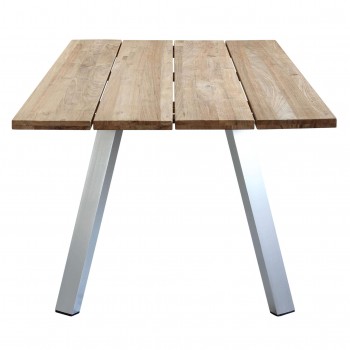 - Gestell aus gebürstetem Aluminium und Tischplatte aus Teakholz