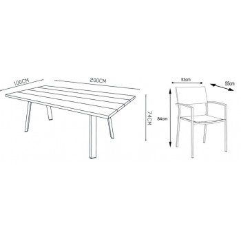 Garten-Tisch Set 200x100 cm Malta aus Aluminium und Teakholz mit sechs Stühlen