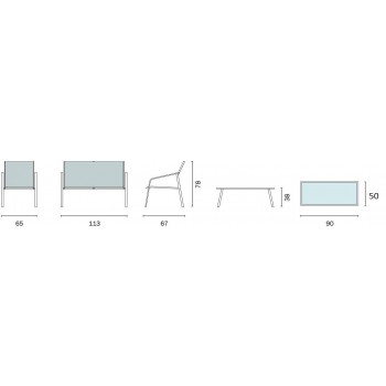 Divano e poltroncine con struttura in ferro verniciato epoxy (con polvere epossidica) di colore bianco