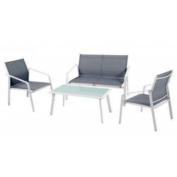Set da giardino composto da un divano a 2 posti, 2 poltroncine e un tavolino rettangolare basso
