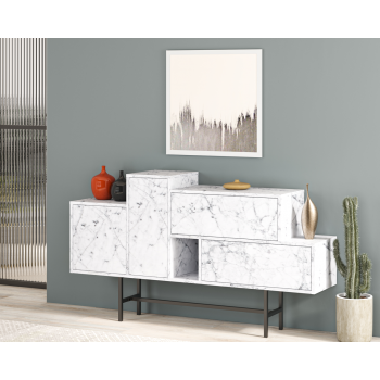 Wohnzimmeranrichte 160x90H cm Martini Carrara Marmoreffekt mit zwei Türen und zwei Schubladen