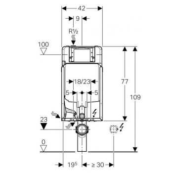 - Wasseranschluss R 1/2", MF-kompatibel, mit integriertem Absperrhahn und Drehknopf