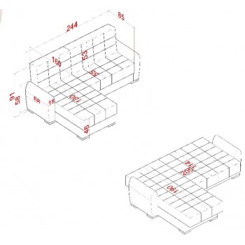 Madrid graue Eckschlafcouch 246X160 cm mit weißem Rahmen