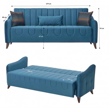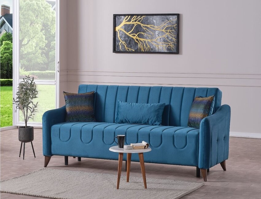 Schlafsofa Dreisitzer Milos aus stoff farbe Blau