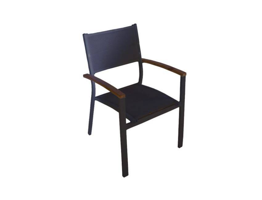 Sedia da giardino con struttura in alluminio verniciato a polvere di colore nero; seduta e schienale in tessuto Textilene imbottito nero