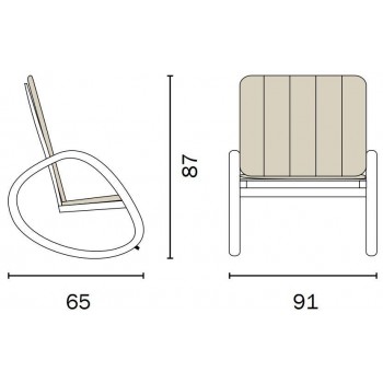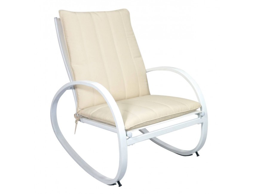 Struttura in ferro verniciato di colore bianco, seduta e schienale in tessuto Poliestere imbottito color ecru (colore naturale delle fibre senza trattamenti)