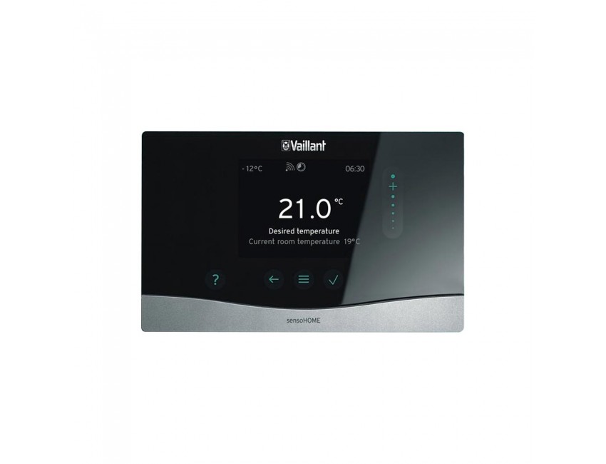Der Vaillant sensoHOME Thermostat bietet die Lösung für Wohnungen mit nur einem Heizkreis. Es verfügt über einen neuen hochauflösenden 3,5-Zoll-Bildschirm. Dank der Touch-Elemente und der vereinfachten Menüführung lässt sich der Thermostat viel schneller als bisher bedienen und in weniger als 2 Minuten konfigurieren. Darüber hinaus sorgen beleuchtete Tasten für eine einfache Bedienung auch im Dunkeln. Und wenn Sie während des Konfigurationsprozesses weitere Informationen benötigen, hilft Ihnen die Fragezeichen-Schaltfläche bei der weiteren Recherche.